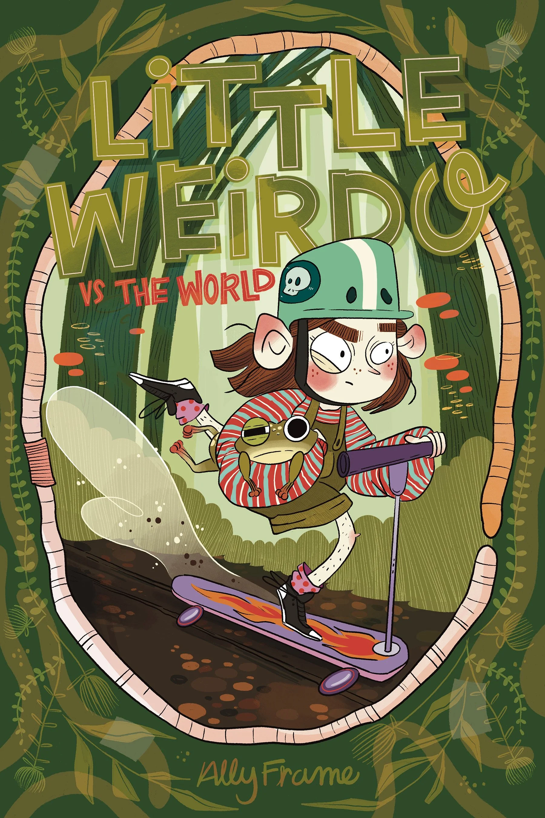 Ally Frame is an illustrator and author drawn to stories that play with humor and whimsy. She grew up in the Midwest making magical worlds in her backyard forest and currently resides in Southern California. When not drawing, you can find her waving hello to dogs and plotting adventures.