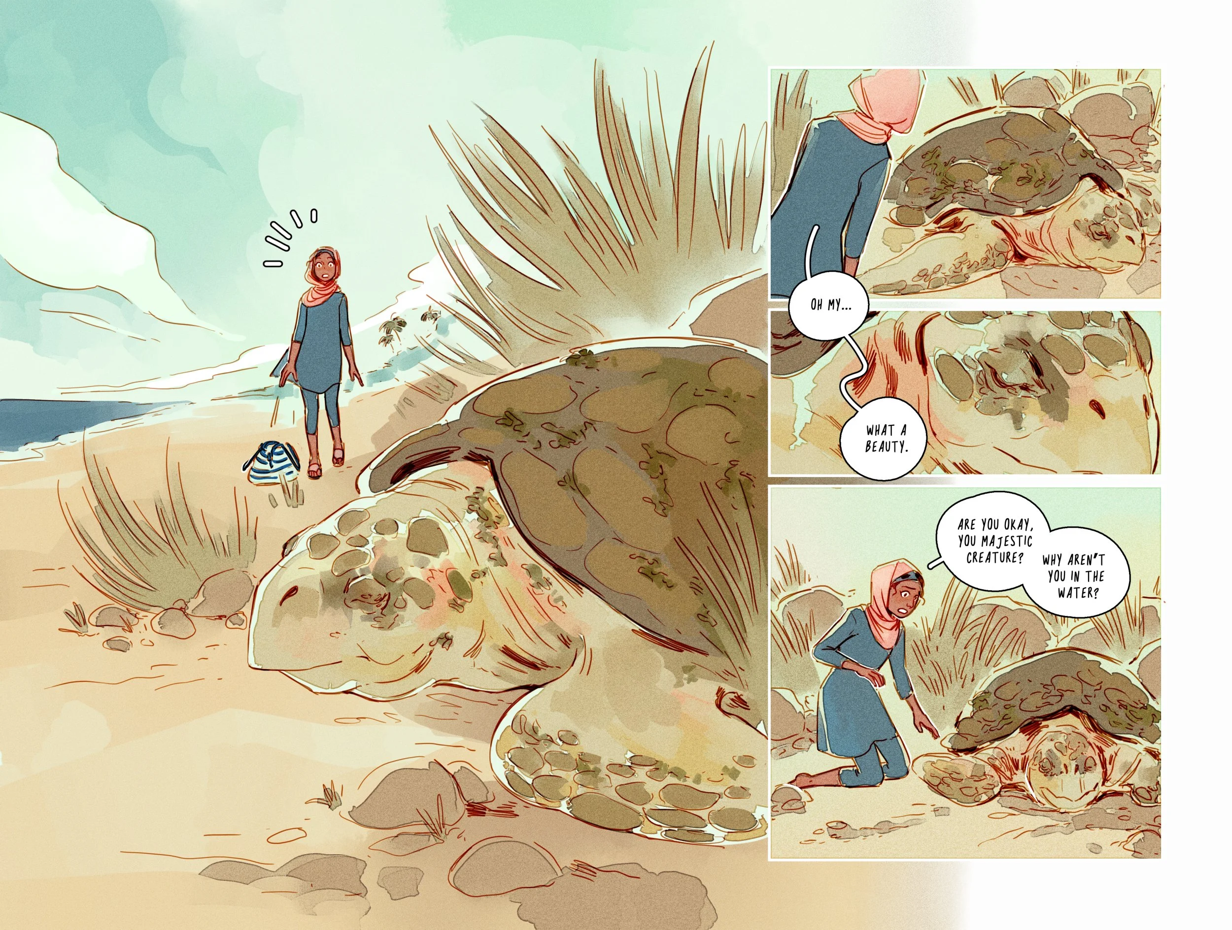Shazleen Khan is a queer Bangladeshi illustrator and comic artist based in London. They are the creator of the award-winning webcomic BUUZA!!, illustrator of the middle grade graphic novel Saving Sunshine, and their dream is to work with every major English language publisher under the sun.